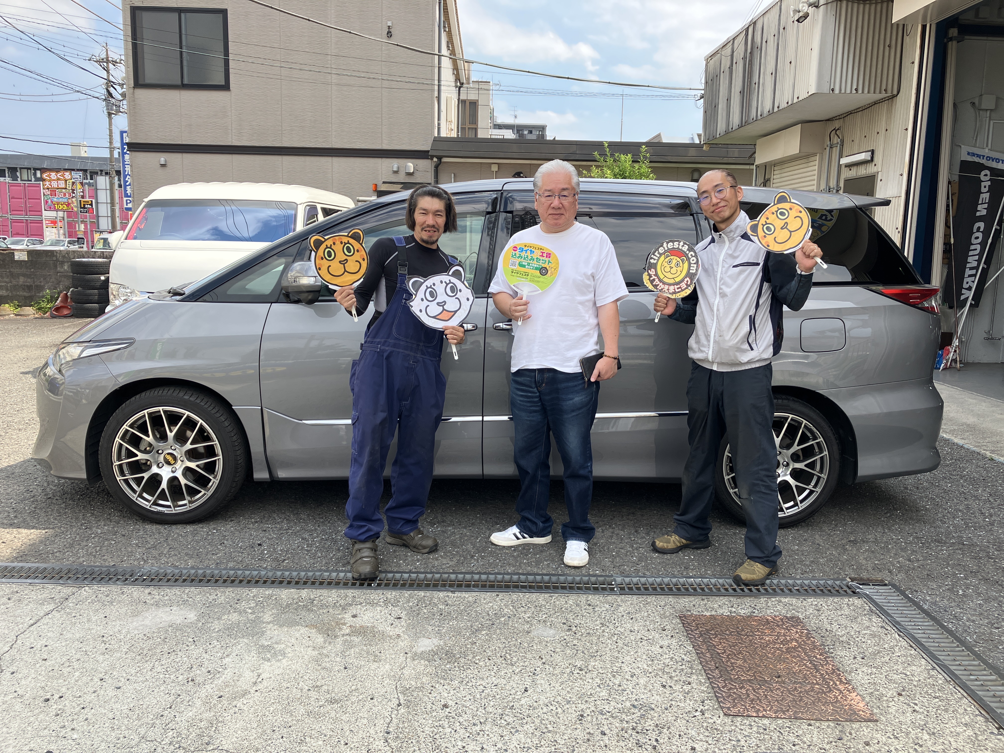 大和店♪大和市D様 トヨタ エスティマ のタイヤ交換を承りました♪決め手は「近さ」♪スタッフとパチリもご一緒に!! 内で公開