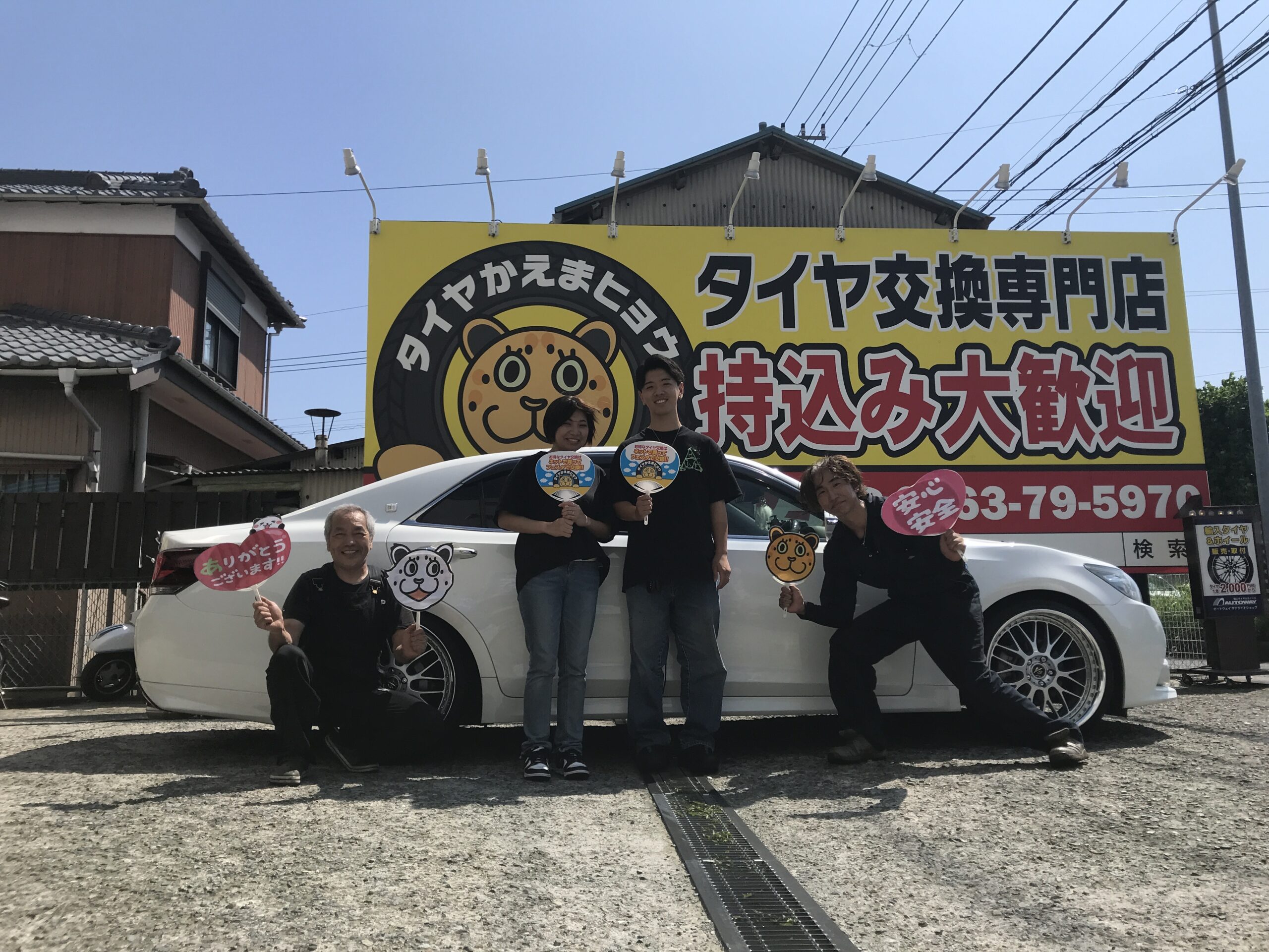 湘南平塚店♪平塚市O様よりトヨタ クラウン210系アスリートのタイヤ交換を承りました♪決め手は「近さ・安さ・予約のしやすさ・電話対応の良さ」♪スタッフとパチリもご一緒に!!