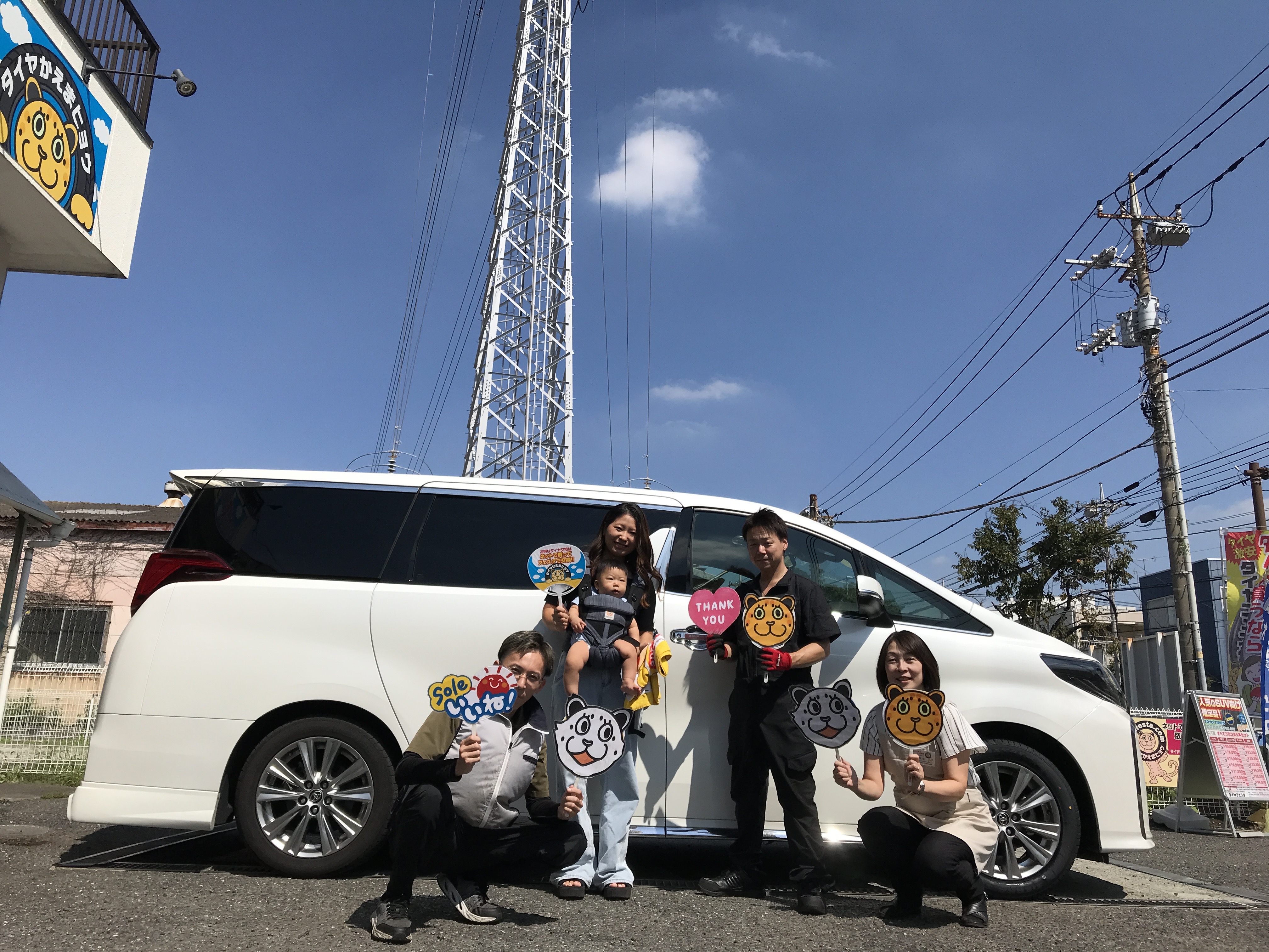 大和店♪大和市S様 トヨタ アルファードのタイヤ交換を承りました♪決め手は「タイヤを直送できるから」!!スタッフとパチリもご一緒に!!