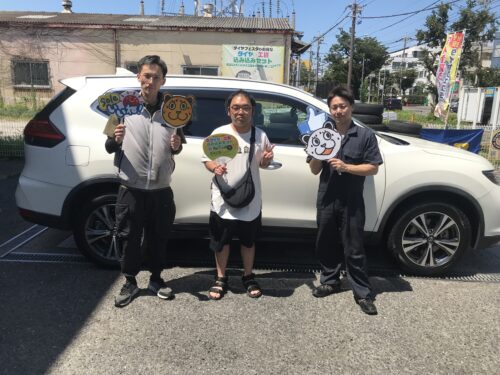 大和店♪大和市Y様よりニッサンエクストレイルのタイヤ交換を承りました♪♪決め手は「近さ・タイヤを直送できるから」スタッフとパチリもご一緒に!!