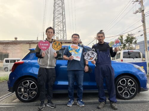 大和店♪座間市A様よりスズキ スイフトスポーツのタイヤ交換を承りました♪決め手は「近さ・予約のしやすさ」♪スタッフとパチリもご一緒に!!