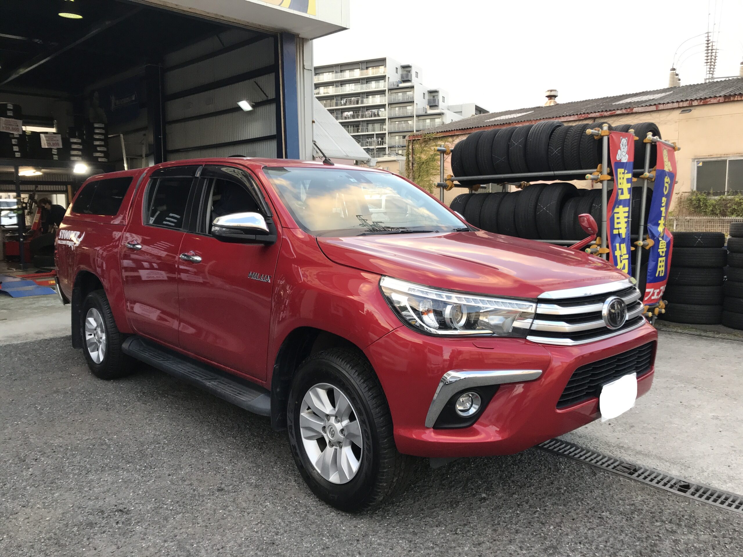 大和店♪藤沢市I様よりトヨタハイラックスのタイヤ交換を承りました♪スタッフと一緒にパチリ♪ 内で公開
