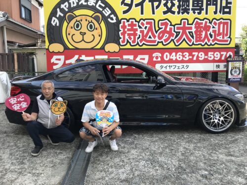 湘南平塚店♪寒川町M様よりBMW M4のタイヤ交換を承りました♪決め手は「予約のしやすさ、ブログを見て、家から近いから、タイヤを直送できるから」♪スタッフとパチリもご一緒に!!