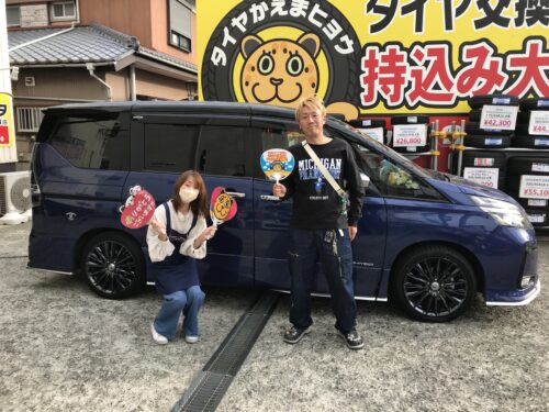 湘南平塚店♪平塚市H様 NISSAN セレナのタイヤ交換を「コミコミセット」で決め手は「近さ・安さ」♪スタッフとパチリもご一緒に!!