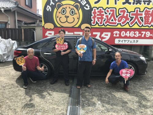 湘南平塚店♪平塚市K様 TOYOTA アリオンのタイヤ交換を承りました♪決め手は「近さ・安さ・予約のしやすさ」♪スタッフとパチリもご一緒に!!