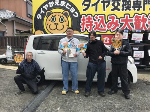 湘南平塚店♪平塚市M様よりダイハツムーブのタイヤ交換を承りました♪決め手は「近さ、安さ」♪スタッフとパチリもご一緒に!!