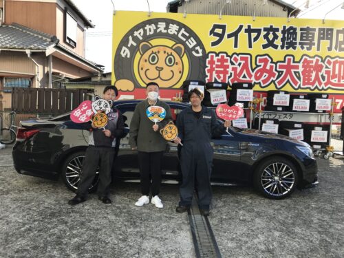 湘南平塚店♪平塚市T様よりトヨタクラウンのタイヤ交換をお得なコミコミセットで承りました♪決め手は「価格、家から近いから、技術力」♪スタッフとパチリもご一緒に!!