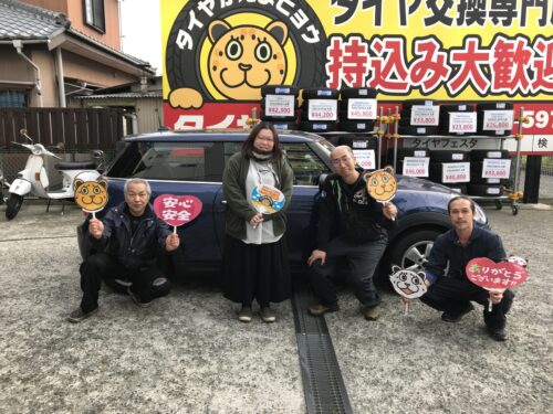 湘南平塚店♪秦野市H様 BMW MINIのタイヤ交換を承りました♪決め手は「予約のしやすさ・家から近いから」♪スタッフとパチリもご一緒に!!