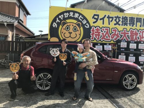 湘南平塚店♪藤沢市N様よりBMW X1 のタイヤ交換を承りました♪決め手は「予約のしやすさ」♪スタッフとパチリもご一緒に!!