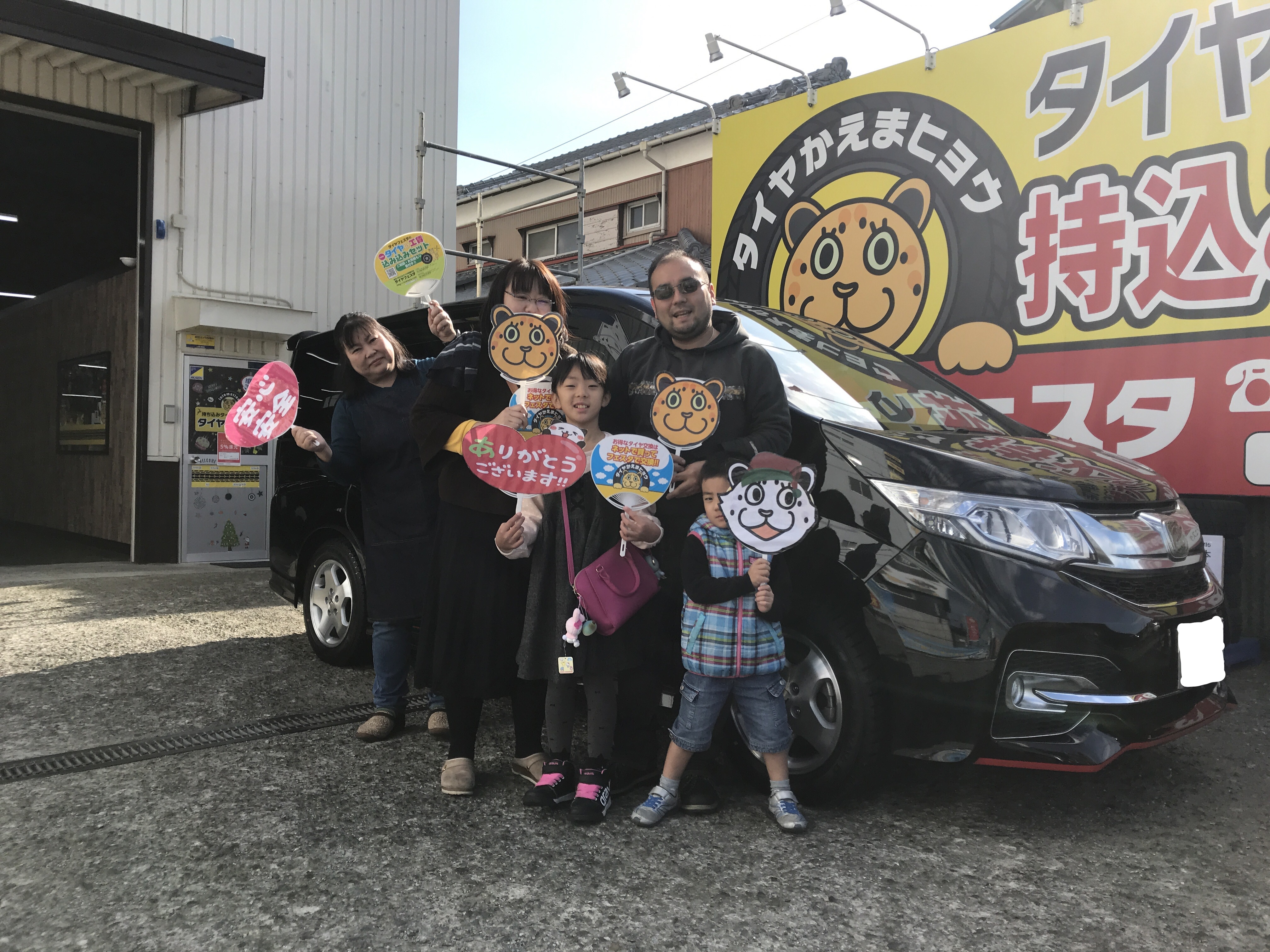 湘南平塚店♪ お得なコミコミセットで ホンダ ステップワゴンのタイヤ交換♬スタッフとパチリもご一緒に☆『タイヤかえまヒョウがなんかすき』☆