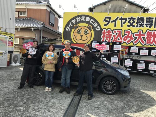 湘南平塚店♪I様よりミツビシコルトのタイヤ交換を承りました♪決め手は「価格、タイヤを直送できるから」♪スタッフとパチリもご一緒に!!