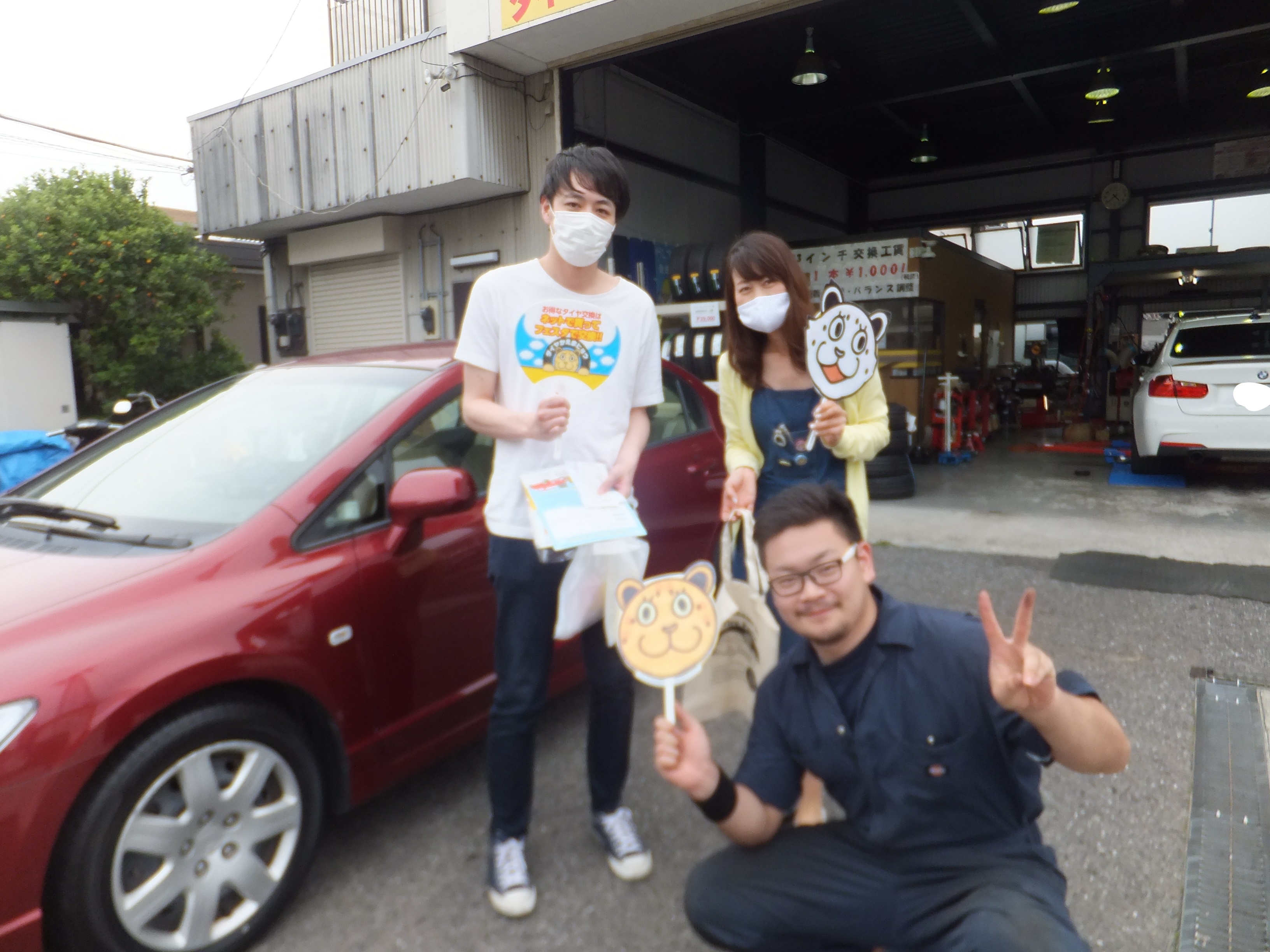 大和店♪広がるご紹介の輪♪大和市I様よりホンダシビックのタイヤ交換でスタッフとパチリ♪ 内で公開