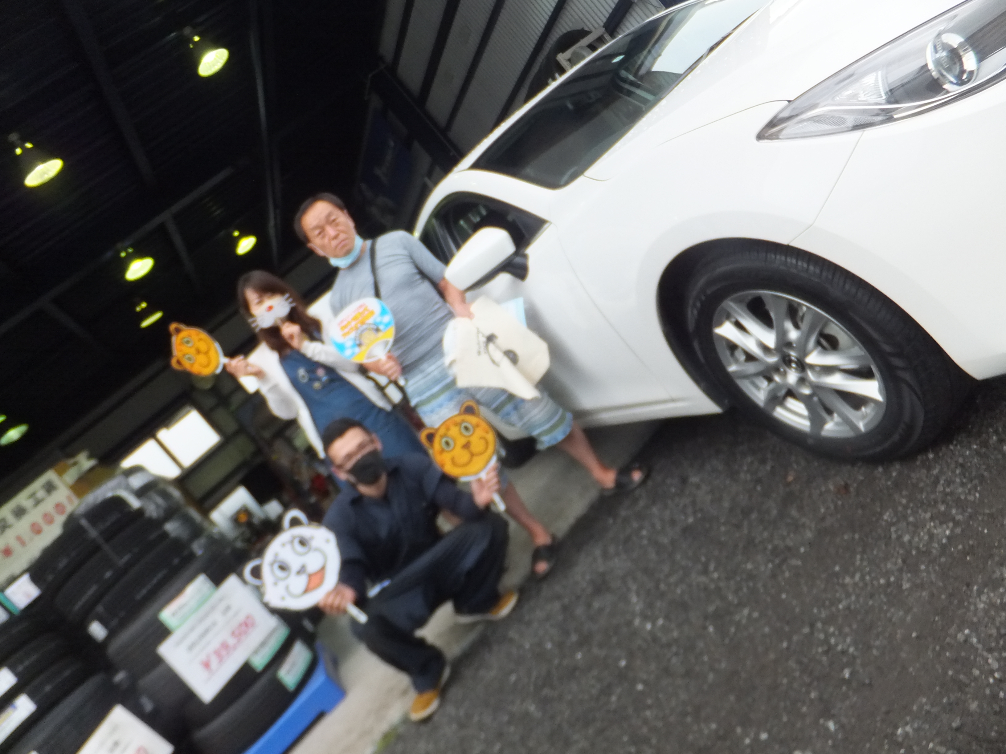 大和店♪大和市K様よりマツダアクセラタイヤ交換でスタッフとパチリ♪「大和イオンモールフードコートのデジタル広告で見つけました!!」